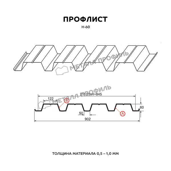 Профлист МЕТАЛЛ ПРОФИЛЬ Н-60x845-A NormanMP (ПЭ-01-7004-0,5) широко применяется для обустройства профилированного листа. Изначально он представляет собой металлический оцинкованный лист с покрытием. Толщина стальной основы с цинковым и декоративно-защитным слоем — 0.5 мм. Проходя процедуру холодного проката, металл принимает волнообразный вид. Жёсткость такого листа на порядок выше плоского.
