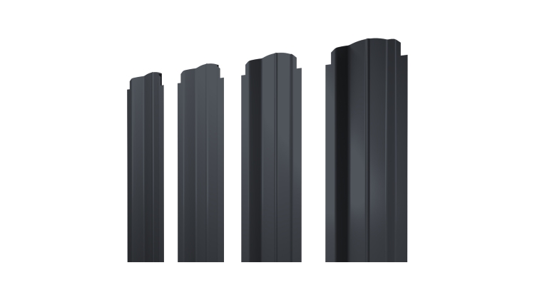 Штакетник П-образный B фигурный 0,45 Drap-double TX RAL 7024 мокрый асфальт в Кузнецке
