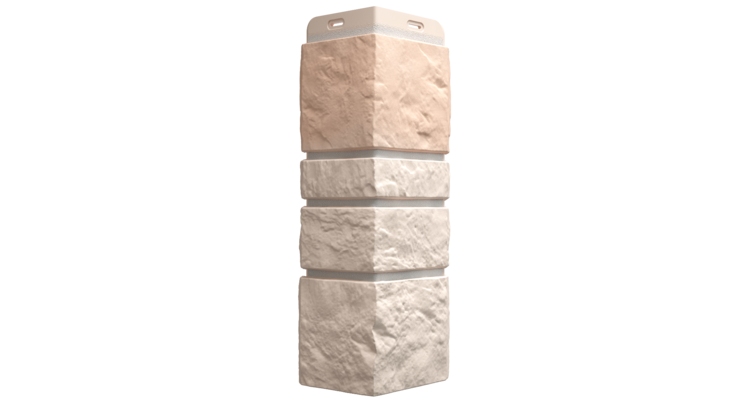 Угловой декоративный элемент, используется в составе комплекта материалов для отделки здания фасадными панелями серии Docke Premium, коллекция Burg, цвет льняной. Формирует единое и законченное решение в рамках дизайна коллекции, имитирующего кладку из натурального камня — юрского мрамора.